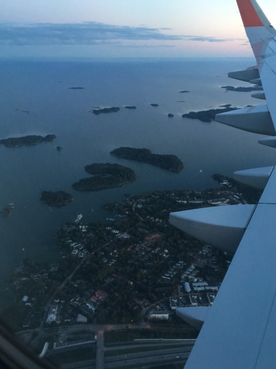 창 밖을 보니 아직 러시아였다. 그러다가 곧 바다가 보이더니 다시 육지가 나타났는데 거기엔 녹색이 울창한 해안이 있었다. 난생처음 본 핀란드였다. 그 땅을 내려다보고 있으니 “여기가 바로 앞으로 내가 살게 될 곳이구나!”라고 생각이 들었다. 한국 시간으로 이미 새벽 2시를 넘은 시간이었는데, 헬싱키에서는 해가 뉘엿뉘엿 지고 있었다. 비행기가 점점 땅과 가까워지고 있었다.