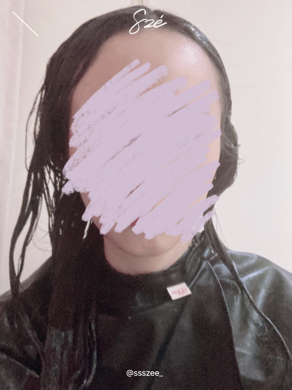 약 10~15분 정도 약이 잘 스며들 때까지 기다렸다가 흐르는 물에 헹궈줍니다. 사진을 보면, 아까랑 달리 머리카락이 평평하게 펴져있죠? 저는 또 한 번 고데기로 필 예정이라, 머리를 감은 후에 드라이기로 잘 말려줬어요. 잘 말리지 않고 고데기를 하면 머리가 탈 수 있대요.
