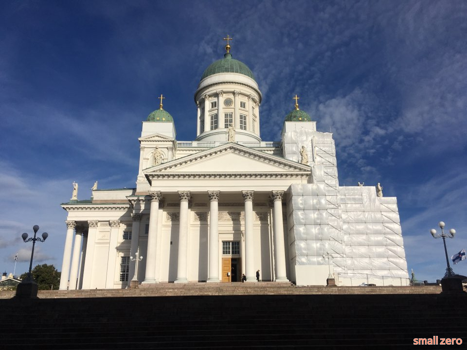 헬싱키 대성당. 사진에 보이는 면은 오른쪽이다. 2016년 9월에는 저렇게 한쪽 모퉁이가 공사중이었다.